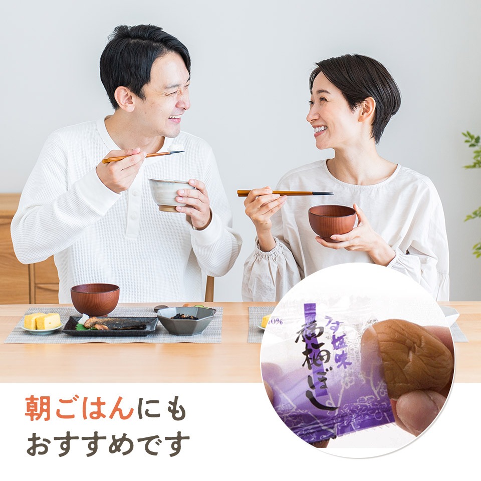 | 原材料名 | 梅、漬け原材料〔食塩、還元水飴、砂糖、発酵調味料〕、調味料(アミノ酸等)、酸味料、ユッカ抽出物、 ビタミンB1(原材料の一部に大豆を含む) |