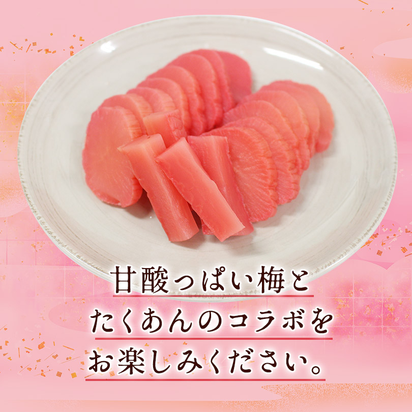 | 干しだいこん、梅肉、しその葉、漬け原材料〔食塩、梅酢、醸造酒、果糖ぶどう糖液糖、カツオ節エキス、香辛料、米ぬか〕、調味料(アミノ酸等)、酸味料、保存料(ソルビン酸K)、酸化防止剤(ビタミンC)、甘味料(ステビア)、香料、着色料(赤102、赤106)、増粘多糖類、(原材料の一部に小麦、大豆を含む) |